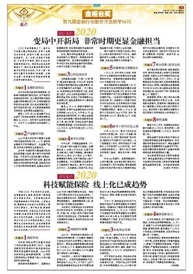 2020年11月27日 星期五 责编:梁美琪 美编:平红 校对:陈泽佳 第九届金融行业服务评选榜单特刊 盘点