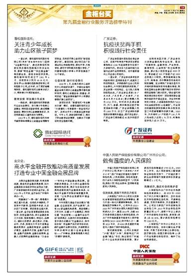 2020年11月27日 星期五 责编:方轶 美编:任东梅 校对:陈泽佳 金柜台奖 第九届金融行业服务评选榜单特刊