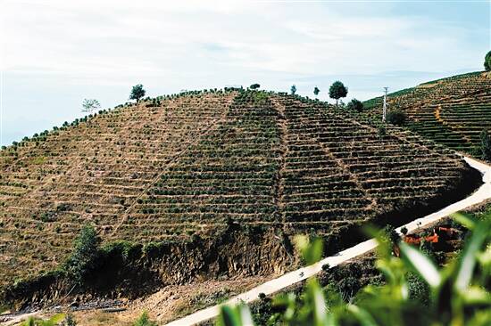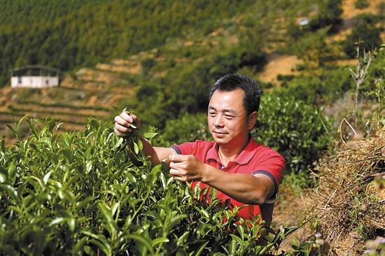■建饶镇饶中村的300亩茶园带动贫困户种茶和就业。下图是老板曾大庆在查看茶叶长势。 |