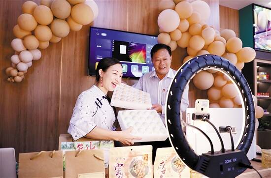 ■10月24日,在珠海横琴新区对口帮扶阳西消费扶贫体验馆,驻阳西县织篢镇平南村第一书记王金平在推介生态土鸭蛋。 |