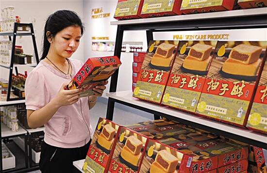 ■梅州市大埔县蜜柚省级现代农业产业园,柚子被加工成柚子酥等产品。 |