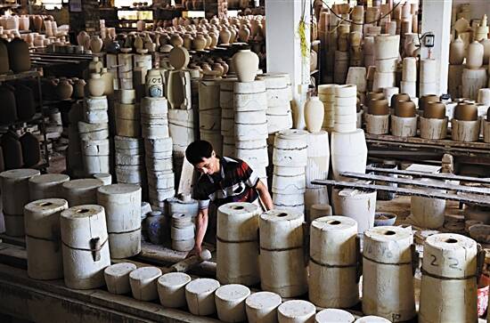 ■梅州市大埔县高陂园区,瓷厂工人正在制作瓷器。 |