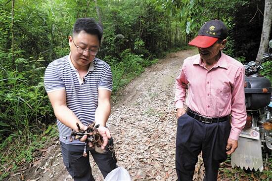 ■梅州市平远县差干镇三达村第一书记杨晴与种植户交流林下灵种植。 |