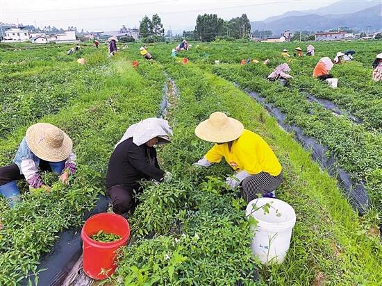 ■梅州市蕉岭县文福镇鹤湖村,村民在辣椒种植基地忙碌。 |