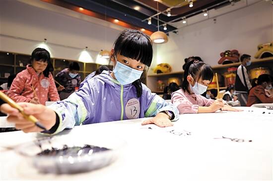 ■昨日下午,“翰墨青春 传承岭南” 广东青少年书画大赛书法现场赛首次在佛山开赛。200余名来自佛山中小学校、青少年宫和艺术机构的青少年现场挥毫,同场竞技。新快报记者 孙毅 林里/摄