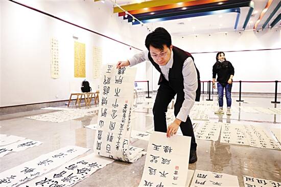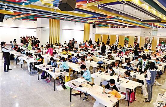 11月29日下午,由广东新快报、广东省美术家协会、广东省书法家协会共同主办,佛山市青少年文化宫协办的“翰墨青春 传承岭南”2019广东青少年书画大赛佛山分赛区书法现场赛在佛山市青少年文化宫(市一宫)一楼展厅开赛。200多名来自佛山地区中小学校、青少年宫和艺术机构的青少年现场挥毫,同场竞技。 书法现场赛首设佛山分赛区 影响力进一步增强 “翰墨青春 传承岭南”广东青少年书画大赛自2015年启动以来,已持续举办五届。以培养青少年对传统文化的兴趣、引导正确的艺术审美取向、挖掘岭南艺术界的优秀接班人为宗旨,是岭南地区高规格的青少年艺术赛事。大赛特邀广东省文学艺术界联合会主席李劲堃、中国艺术研究院博士生导师许钦松和广东省书法家协会主席张桂光担任艺术顾问。 经统计,五年间,大赛共征集来自全国各省市、地区作品9万余幅,参赛人数7万余人。第五届书画大赛总赛区共收到来自广东、山东、云南、广西、甘肃等多个省区及港澳台地区青少年书法、绘画作品15000余幅。 作为首次开设的分赛区,赛事主办方联合青少年素质教育和创新教育的重要活动基地——佛山市青少年文化宫打造本场书法现场落地赛事,有针对、有落点地进行青少年书画教育工作的引导和推广。 选手年龄6岁至35岁不等 共设三个组别 下午2时,参赛选手陆续到场,进行赛前签到并领取参赛号码牌。选手年龄从6岁至35岁不等,划分为儿童、少年、青年三个组别。 为配合疫情防控工作,选手及陪同人员需佩戴口罩,测量体温,出示健康码方可入场。展厅内比赛用桌整齐排列,每两名选手共用一张,每张桌面铺有书法专用毛毡布。除选手外,家长、老师等陪同人员均不可进入比赛展厅。主办方安排了来自广东技术师范大学的30余名高校志愿者在场内为参赛选手提供服务。 为保障大赛公平,比赛用纸统一由组委会提供,包括四尺整张、四尺对开和格子宣纸三种选择,并盖有大赛官方印章,每位选手限用纸两张。赛题参照往届标准,设置长短不一的题目十余道,其中包括成语、对联、古诗文、名人名句、现代口号等,提供简体和繁体两种版本。不限书体,选手可在45分钟内任选其中一题进行创作。赛题全程保密,于开赛前两天对外公布。 省书法家协会专家全程坐镇 评出百余幅作品入围总赛区 分赛区比赛现场,广东省书法家协会专家评审团与佛山市青少年宫副主任梁羡中、佛山市青少年宫美术部部长曾晓芳全程坐镇。在赛事的过程中,评委们在赛场内来回巡视,对选手们的书写进行监督指导。赛事结束后,评选工作也随之展开,共评出百余幅作品入围总赛区,将与来自全国的入围选手共同角逐书法组等级奖和优秀奖的奖项。赛果将通过“佛山市青少年文化宫”官方公众号和新快报艺术类公号“新艺道”对外公布。 总赛区书法组总决赛也已提上日程,凡入围总赛区书法组的选手都将被邀请参与12月底在广州流花展贸中心举办的书法现场赛,赛事详情届时将通过“新艺道”统一对外公布。 现场扫描 选手桌前淡定挥毫 家长场外暗自加油 铺纸、着墨、书撇书捺……坐在第一排角落里的初一女孩周钰言练习书法已6年,却是第一次参加书法比赛。“我有点紧张。”赛前,周钰言说,自己热爱书法,练习的时候觉得开心愉悦,不过,如果有很多书写任务的时候,就会有点小情绪。“我目前学习的是颜真卿的字帖,希望以后能成为书法家。这次比赛就是想看看自己的水平。” 周钰言说。 11岁的陈同学则已经有了丰富的比赛经验。这次,在老师的建议下,他拿了橘色的颜料来书写,“很喜欢书法,好看又好用,希望能拿个一等奖。” 相比于青少年,场外等待的家长要不淡定很多。比赛开始后,爸爸妈妈们高高地举起手机,找寻自家小孩的身影。穿粉色衣服的师妈妈坦言,自己可能比小孩更紧张。面对镜头,师妈妈喊话爱女:“不管结果怎样,你就是最棒的!” 声音 只有了解自己所书内容 才能写出情绪写出感情 作为广东省内高规格的艺术赛事,“翰墨青春 传承岭南”广东青少年书画大赛开设了佛山分赛区现场书法赛,这必将为佛山地区有志的青少年提供展示自我的平台和机会。佛山很重视书法教育,几乎每个中小学都开设了书法课。今年的赛场上涌现了许多水平不错的孩子,希望他们能取得好成绩。 ——广东省书法家协会主席团成员、佛山市书法家协会主席王志敏 小时候的爱好可以影响人的一生,书法比赛对青少年来说意义非凡。我读中学时曾参加过书法比赛并拿下一等奖,从此就走上书法的道路。对于青少年来说,只有了解自己所书内容的时候,选手才能写出情绪,写出感情。希望青少年能坚持下去,因为书法之中有无穷无尽的乐趣。 ——广东省书法家协会主席团成员、广州市书法家协会副主席兼秘书长梁晓庄 佛山是中国书法名城,我们这次比赛在佛山设立分赛区,必将对佛山青少年的书法教育起到助推器的作用。“翰墨青春 传承岭南”,是目标也是宗旨,希望社会上的各种资源能整合起来,多为孩子们的成长尽心出力,下力气做些培根铸魂的工作。 ——广东省书法家协会副秘书长、广东省文联艺术馆馆长李菲鸿 从现场看,佛山的选手训练有素,心态很好,淡定从容;与其交谈,大方而不拘谨。从书法技艺来说,有几位小朋友挥洒自如,与大学生比也不逊色。这说明佛山青少年基本上是
