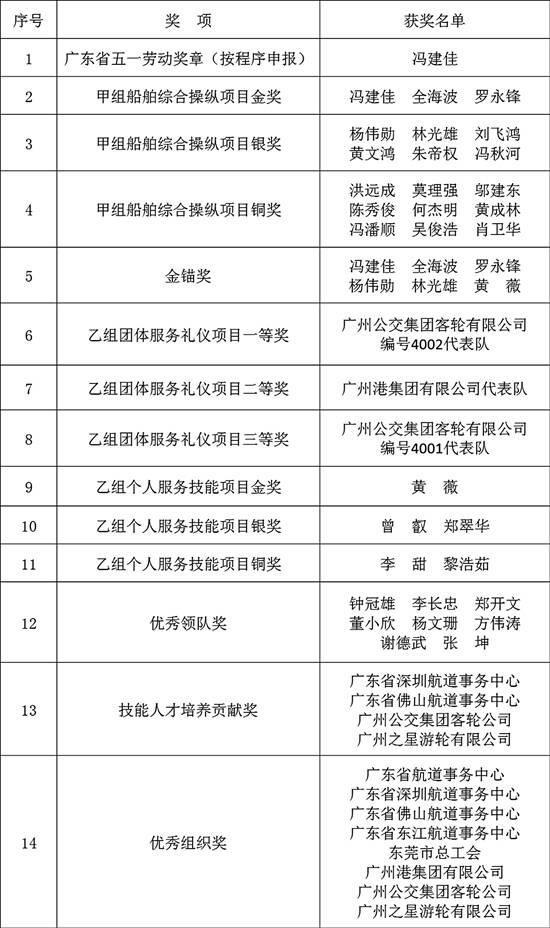 ■广州公交集团珠江游船长冯建佳获得船舶综合操纵一等奖和金锚奖,省总工会将按程序授予其“广东省五一劳动奖章”。 |