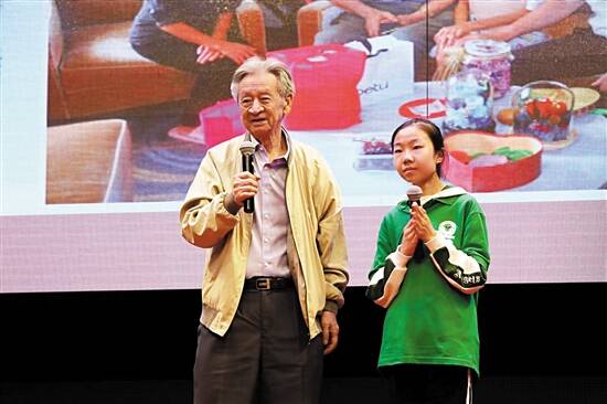 ■婷婷将亲手制作的“永生花”送给王颂汤老会长。本版图片均由通讯员提供 |