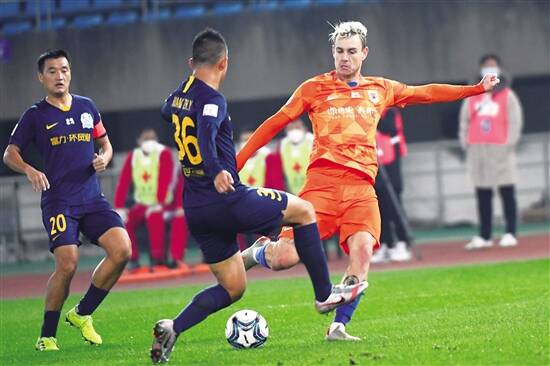 ■12月2日,山东鲁能泰山队格德斯(右)在比赛中射门得分。新华社发 |