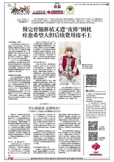 做完骨髓移植又遭“皮排”困扰 痊愈希望大但后续费用接不上