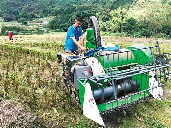 ■赤黎村共享农场,收割完水稻后正准备将收割机开回仓库。 |