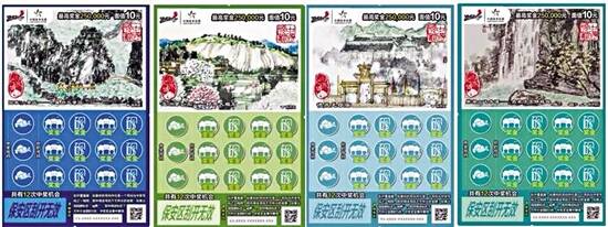 “山水之城”即开票 (10元) “山水之城”即开票选择肇庆的七星岩、鼎湖山、德庆龙母庙、封开大斑石作为票面元素,重点展示秀美风光。最高奖金25万元。 |