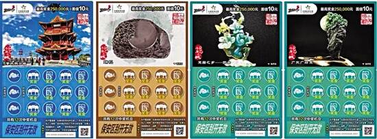 “千年之城”即开票 (10元) “千年之城”选择肇庆的披云楼、端砚、四会玉器、广绿玉作为票面元素,重点展示历史文化底蕴。最高奖金25万元。 |