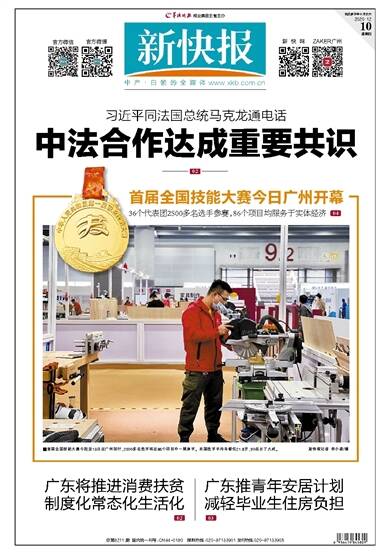 习近平同法国总统马克龙通电话 中法合作达成重要共识 02 首届全国技能大赛今日广州开幕 36个代表团2500多名选手参赛,86个项目均服务于实体经济 04 广东将推进消费扶