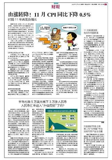 据新华社电 时隔11年,CPI同比再现负增长。国家统计局昨日发布数据显示,11月CPI同比下降0.5%。这是2009年10月以来该数据首次出现同比负增长。国家统计局城市司高级统计师董莉娟表示,受去