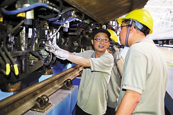 11月24日上午,全国劳动模范和先进工作者表彰大会在北京人民大会堂隆重举行。广州市有11人被评为2020年“全国劳动模范”,广州地铁集团首席维修专家张重阳正是其中一员。从2003年8月进入广州地铁工作负责机电设备维修,张重阳从高级工、技师一直干到首席维修专家,还成了广州市首批劳模创新工作室的带头人。张重阳的出现,是广州地铁重技术、提倡创新良好氛围的一个重要体现。正是广州地铁这种良好的氛围,一批批工匠保障了广州地铁安全运营8000多天,实现运营安全可靠度世界排名首位,为千万乘客提供优质服务。助力广州地铁成为这座城市引以为傲的安全可靠、准点便捷、干净文明的新时代交通系统。 由于业绩突出,张重阳先后荣获2005年度“全国知识型职工先进个人”,2006年度“广州市劳模”“广东省劳模”“广州市突出贡献技师”,2012年度“全国五一劳动奖章”,2015年度“广州好人”,2016年度“南粤工匠”等荣誉称号。2017年当选广州市第十五届人民代表大会代表,2019年当选广东省总工会第十四届委员会常委。 实干笃行活跃在技术改造最前线 “隔行如隔山,说实话学习是比较难的。” 2003年,张重阳从化工转行到地铁维修行业。“我最大的挑战就是38岁转到地铁来干活。那个时候觉得能不能胜任这个工作,因为要重新开始学习。” 为了尽快熟悉工作,张重阳先后自学了微机、电子、电气等相关专业技术知识,为看懂国外进口设备的技术材料坚持自学英语,英语水平很快满足工作需求。多年来,他坚持不断学习轨道线路相关检测知识,跟踪国外先进技术的发展趋势,获取最新技术资料,主持编写了“网轨检测车用户技术需求书”和“大型钢轨探伤车用户技术需求书”,为广州地铁的设备采购提供了强有力技术依据。 凭着超常的干劲和钻劲,张重阳这些年来一直活跃在技术改造的最前线,并开创多项技术先河。2012年,张重阳又牵头组建了11个技能专业组,为地铁运营各类难题把脉问诊。至今,他牵头的技能团队已组织开展了79项技术攻关,解决了151个地铁车辆运营及设备检测检修生产难题。 敢闯敢冲打破国外技术垄断 在打破国外技术垄断方面,张重阳一直敢闯敢冲。2004年,广州地铁进口了当时国内第一辆钢轨打磨车,这个设备集电、气、液机电一体化,用于消除钢轨波浪形磨耗,减少车辆振动,保障乘客出行安全。从那时开始,张重阳进入了一个全新的领域,开启了自己事业的新篇章。 “那个说明书一开始对我来说就像天书一般。”但认输显然不是张重阳的性格。在自学英语之后,张重阳便频频请教外国专家,抓紧一切时间学习说明书和技术图纸,在两年时间里,掌握了国外厂家认为“广州地铁不可能掌握的技术”。 “一开始是他们(外国专家)干,我们看;到最后是他们看,我们干。” 对于负责维修的G031网轨检测车键盘不能输入里程的难题,张重阳持续钻研,不断试验,最终通过转换思维模式,自己设计驱动电路,成功解决了这个长期困扰一线工人,连厂家都不能解决的问题,也赢得了行业内专家的交口称赞。 与此同时,张重阳牵头设计制作的 “钢轨打磨车电动冲洗道床装置”被国外的生产厂家采纳,在此后生产的钢轨打磨车上都带有他设计的“电动冲洗道床装置”,开启了该领域的又一技术先河。 地铁旧的网检系统检测精度不高、定位点不准,且模拟受电弓在检测过程中存在翻弓的安全隐患。为了彻底解决这个问题,2009年,张重阳与西南交大弓网科技公司联合研发了全国第一套机器视觉检测系统,测量精度达2mm,该技术在国铁和全国地铁行业中处于领先水平;随后,他牵头制定了6项网轨检测的标准规程,成为国内网轨检测领域的先行者;带领团队研发“三遍打磨工法”,改变了十几年来未曾撼动过的传统打磨模式,为行业首创。 劳模创新工作室助推“地铁智造”转型 为了激励职工发明创造,推动技术创新发展,2012年,以张重阳为带头人,并以其名字命名的广州地铁首个“劳模工作室”正式成立。2013年,地铁为了鼓励一线工人创新,特开始正式设立“首席技师”岗位,张重阳成为广州地铁第一位“首席技师”。正是有一批像张重阳一样的工匠,保障了广州地铁安全运营8000多天,实现运营安全可靠度世界排名首位,为千万乘客提供优质服务。助力广州地铁成为这座城市引以为傲的安全可靠、准点便捷、干净文明的新时代交通系统。 “只有等你把专业基础钻透了以后,你才知道在哪里要改进、改善、完善和创新。”张重阳认为,创新不是凭空想象,而是钻深钻透之后的机遇点。自成立以来,工作室合力累计完成技术攻关79项,工装开发124项、测试台27项。累计申请实用新型专利7项。14个项目获得第三届广州市职工发明创新大赛奖,1个项目获第三届广州职工发明创新大赛一等奖,26个项目总公司职工经济技术创新成果奖。2015年,工作室被评为 “广东省劳模创新工作室”。 张重阳创新工作室的成功运作,带动形成了“技改攻关在一线、创新发明在一线、解决问题在一线”的优良风气,并为广州地铁探索建立劳模创新长效机制提供了先进经验。如今,劳模创新工作室已成为了广州地铁鼓励职工发明创造,推动技术创新发展的重要平台。截至2019年,广州地铁已创立劳模创新工作室33个,培育了一大批享誉行业的地铁工匠,并创造了巨大的经济效益和社会效益,为推动“地