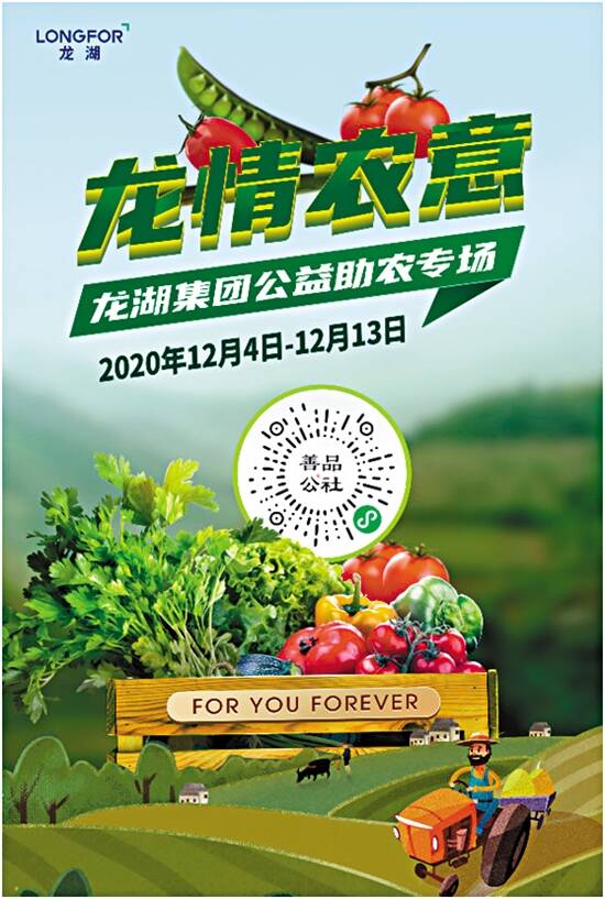 “龙情农意 爱心传递”,12月4日由广州龙湖主办的2020公益助农专场活动正式启幕,将通过线上+线下公益售卖形式,将优质的公益农产品带出大山,贯彻消费助农的善举。据悉,本次活动历时两周,龙湖携手中国扶贫基金会旗下社会企业——善品公社,以及“长江严选”等多个公益组织及服务平台,调动旗下地产开发、商业运营、租赁住房、智慧服务四大航道的不同空间,“以买代帮”,消费助农。预计本次活动将覆盖全国30余个城市及地区,帮扶20余个偏远乡村。 2020年是全面建成小康社会目标实现之年,也是全面打赢脱贫攻坚战收官之年。无论是龙民节活动的公益助农直播带货,还是公益助农专场活动的开设,龙湖都在以创新性的公益形势为农民脱贫助力,为社会美好发展注入更多能量。 在刚刚过去的“龙民节”上,龙民与龙民工的线上直播带货以超800万次的观看量和近400万次的互动量,创下60余万元的助农佳绩。为了答谢业主们对公益助农的热情,广州龙湖智慧服务还特意采购了助农产品作为年底新交付业主的乔迁好礼。双珑原著业主刘小姐表示:“龙湖把公益元素和社区活动相结合,不仅为我们带来了优秀的农产品,还顺带做了公益,非常有意义。”本次活动,广州龙湖结合本地饮食习惯,精心选取了云南梯田红米、盐源苹果、云南普洱茶、江西蜜柚等特色农产品,在传递爱心的同时,也为业主们带来健康天然的优质农产品。 广州龙湖相关负责人表示,在国家倡导巩固拓展脱贫攻坚成果、助力乡村振兴的大背景下,龙湖正以空间为纽带,连接城市与乡村;以自身为纽带,连接龙民与农民;开拓城乡互动新链路,开创新型公益范式,丰厚“空间即服务”的内涵。未来,公司将承袭善待文化,结合时代要求,在公益领域持续投入,为推动乡村振兴、城乡协调发展,贡献企业力量。 据悉,龙湖集团自成立起就长期致力于教育科研、文化保护、幸福安居、产业帮扶、扶贫救灾、生态环保、就业促进等公益事业。据统计,龙湖已累计建成各类保障房超1.5万套;集团已形成“龙湖年货”等特色公益品牌,每年持续开展扶贫济困活动。截至目前,龙湖慈善公益事业已累计投入超9亿元人民币。