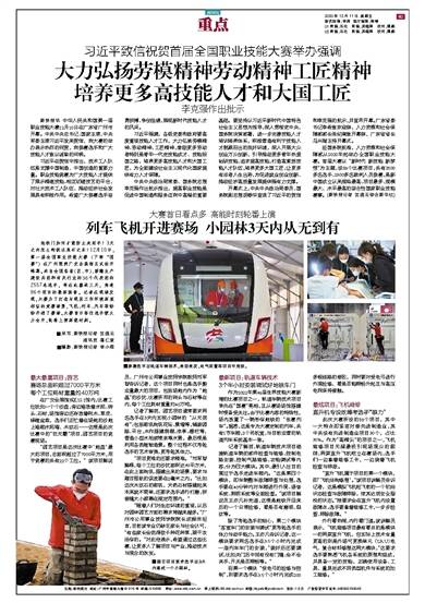 大力弘扬劳模精神劳动精神工匠精神 培养更多高技能人才和大国工匠