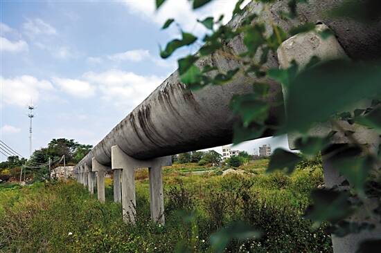 ■腾空架起的灌溉浮渠解决了汕头市潮南区平湖西社区逢雨必浸、干旱无水灌溉的问题。 |