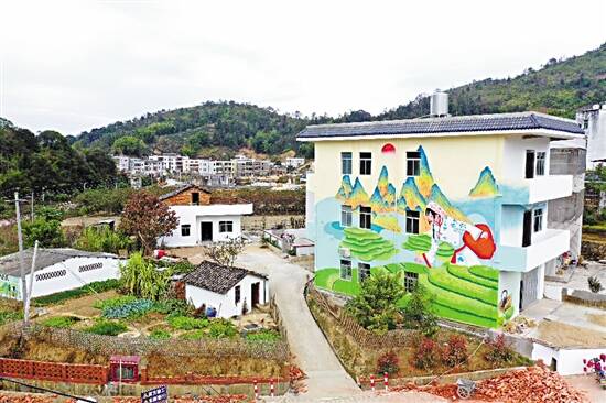 ■经过升级改造,大梧村村委会周边多栋房子涂上了精美的油画彩绘。 |