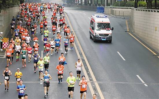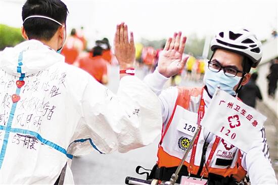 新快报讯 记者高镛舒 通讯员穗卫健宣报道 广州马拉松赛在天河体育中心鸣枪起跑,比赛也对所有的参与人员进行了严格而细致的防控保护。所有进入马拉松比赛场地的运动员和全体工作人员都需要进行体温检测。 本届广马在赛道全程共设置了34个医疗保障点。清晨5时30分,由36家三级综合医院派出的医疗队和救护车已经到达医疗点待命,应急救治医疗物资也已经到位。每支医疗队由急诊科医生、护士、担架员和司机组成,配备了除颤仪、氧气设备、内外科急救箱、心肺复苏仪等设备,以及常见运动损伤用药。6时许,参加广州马拉松医疗保障的志愿者开始陆续为入场准备的运动员进行手消毒。 新快报记者从广州市卫健委了解到,今年情况特殊,为进一步做好疫情防控工作,广马医疗保障指挥部特意在起点和终点处各安排了一台负压救护车待命,以备发热病人转运之用。同时,广马医疗保障指挥部在终点前后重点安排了多支医疗队,为肌肉痉挛、扭伤、拉伤、擦伤的跑者喷药、按摩,缓解疼痛,全力保障选手的生命安全。在终点固定医疗点,还为冲刺的选手准备了葡萄糖水和盐水,补充能量和电解质。此外,本次为广州马拉松提供医疗保障的还有来自广州医科大学的志愿者,赛道每隔100米安排一名医疗志愿者,他们身着橙色马甲,头戴白帽。 瞬间