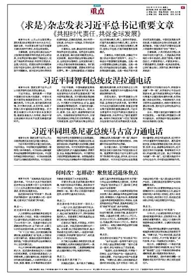 据新华社电 12月16日出版的第24期《求是》杂志将发表中共中央总书记、国家主席、中央军委主席习近平的重要文章《共担时代责任,共促全球发展》。 文章强调,经济全球化是社会生产力发展的客观要求和