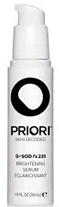 PRIORI Q + SOD fx220 极效瓷白焕亮晶露 有效改善肤色不均匀,减少面部色素沉淀,还添加了视黄醇,能够防止光老化,减少细纹的产生。 |
