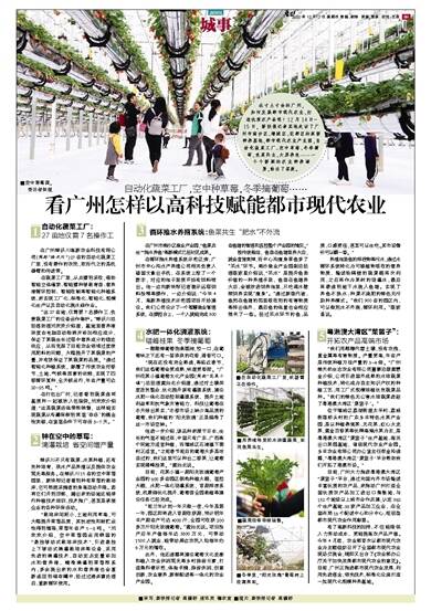 在寸土寸金的广州,如何发展都市现代农业、打造优质农产品呢?12月14日-15日,新快报记者实地走访了广州市南沙区、增城区、花都区的高新种养基地、都市现代农业产业园,自动化蔬菜工厂、空中草莓、冬季葡