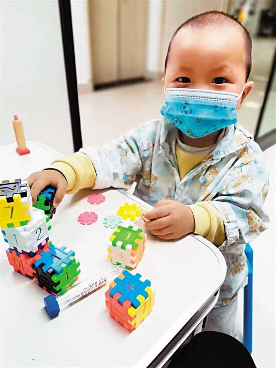 ■精神好的时候,雨涛最喜欢搭积木。 |