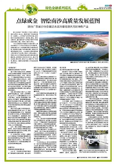珠江水流经广州花都区、开发区,最终在南沙自贸区入海。这一路寓示着广州经济发展的一条脉络——从传统产业密布的区域,流向新时代经济新发展的另一些高地、新地。绿色金融活水,蕴含着促进产业转型升级和可持续