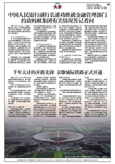 中国人民银行副行长潘功胜就金融管理部门 约谈蚂蚁集团有关情况答记者问