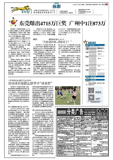 新快报讯 记者陆妍思报道 12月26日,体彩大乐透第20132期开奖,当期东莞一张单式票独中3注追加一等奖,爆出4715万多元巨奖,广州一位幸运儿也中出1注873万多元基本投注一等奖。 体彩大