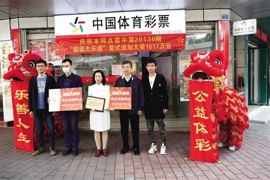 新快报讯 记者陆妍思 通讯员李琪报道 12月28日上午,白云区体育彩票中心为位于该区景泰街的4401001325体彩实体店举行大奖庆祝仪式,该店中出20130期“超级大乐透”1617万元大奖,白云区文化广电旅游体育局副局长罗旋为实体店业主颁发幸运销售牌匾,业主和销售员均获得奖励金。 4401001325体彩实体店门前锣鼓喧天、醒狮舞动。据悉,本次揽得大奖的幸运儿当天途经彩票店时顺手购买了一张7+3的复式追加票,单票总金额189元,他之前也中过几千上百元的小奖,这次终于捧得千万头奖。值得一提的是,此次大奖为白云区今年中出的第三个“超级大乐透”大奖。 白云才响庆功锣,增城又敲中奖鼓,广州体彩最近很旺,大奖中不停。12月26日,体彩大乐透第20132期开奖,广东揽获4注一等奖,其中3注追加一等奖花落东莞长安乌沙村环南路209号的4417017079体彩实体店,总揽奖金4715万余元;而广州则斩获1注基本一等奖,花落增城区三江荔三路67号的4401023542体彩实体店,中奖的彩票是一张10元5注单式票。至此,广州市今年已20次中出500万元及以上体彩大奖,刷新史上大奖纪录。上一次刷新时间为今年12月21日,距12月26日仅仅过了4天。