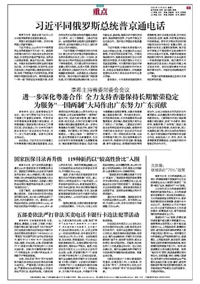 进一步深化粤港合作 全力支持香港保持长期繁荣稳定 为服务“一国两制”大局作出广东努力广东贡献