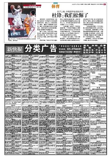 新快报讯 记者高京报道 已取得九连胜的广东男篮昨日没有延续连胜的步伐,球队以25分的劣势负于上海队,遭遇了本赛季第三场失利。赛后,主帅杜锋并没有太过苛责全队,他表示球员们此役有些松懈,希望大家能够
