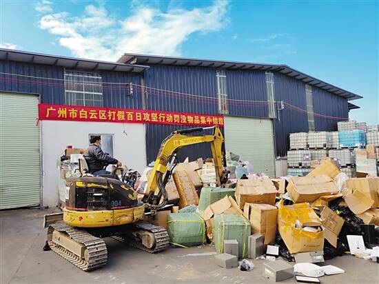 ■12月下旬,白云区对打假百日攻坚行动中收缴的假冒伪劣物品进行集中销毁。 通讯员供图 |