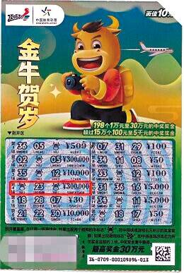 新快报讯 记者陆妍思报道 临近年底,彩市最受关注的玩法非“牛票”莫属。近日,“牛票”在广东迎来“开门红”,揭阳梅云圩场路27号的4450030741体彩实体店中出顶呱刮即开票“金牛贺岁”全省首个30万元一等奖。 销售员提醒才知中大奖 12月28日,中奖者林先生携妻子一同前往揭阳体彩中心领取了奖金。林先生透露是从外地来到揭阳打工的,很早就开始接触体彩顶呱刮即开票,平时路过体彩实体店也都会刮上几张娱乐一下减轻工作压力,顺便也为社会公益奉献点力量。 谈到这次中奖,林先生表示:“听店里的人介绍这是款新票,就想着试试看,只买了几张,没想到刮中了大奖。刚开始以为自己中的是3万元,心里已经很激动了,后来被销售员提醒后才发现是30万元!” 对于这次奖金的规划,林先生激动地说儿子明年娶媳妇正需用钱,这钱来得及时,可谓是双喜临门啊! 三款“牛票”可获奖上奖 需要提醒广大彩民的是,2020年12月23日-2021年2月8日,广东体彩“生肖即开票400万奖上奖”活动火热进行中。活动期间,在全省体育彩票各大体彩实体店,购买“牛气冲天”、“金牛贺岁”、“牛”三款票任一票种,刮中相应等级的奖项,除了获得中奖奖金,还可获得中500元送500元,中100元送100元的即开票。