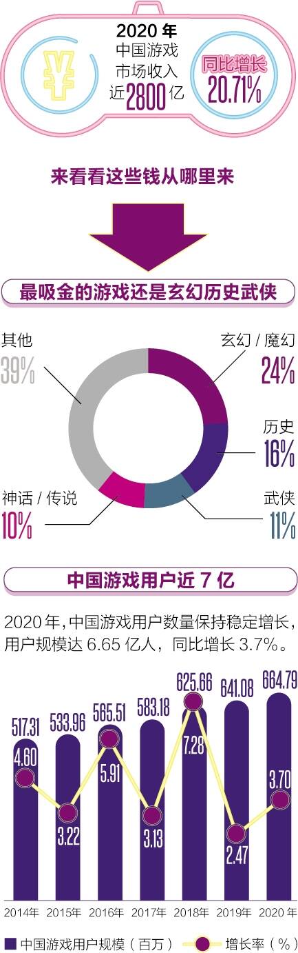 ■策划:新快报记者 罗韵 ■统筹:新快报记者 梁彧 ■采写:新快报记者 罗韵 ■制图:廖木兴 又到一年岁末,在这不平凡的一年里,中国游戏产业表现如何?在广州日前召开的2020中国游戏产业年会上,中国音像与数字出版协会第一副理事长、中国音数协游戏工委主任委员张毅君公布的《2020年度中国游戏产业报告》(下称“报告”),为行业交出了一份令人动容的答卷。 报告显示,2020年,我国游戏用户规模逾6.6亿人,中国游戏市场实际销售收入2786.87亿元,同比增长20.71%,增速同比提高13.05个百分点。“游戏出海”规模进一步扩大,自主研发游戏海外市场实际销售收入154.50亿美元,同比增长33.25%,增速同比提高12.3个百分点,国际化水平进一步提升。 值得称许的是,今年广大游戏从业者更加注重社会效益,更加注重未成年人保护工作,更加注重精品化建设,更加注重文化内涵,更加注重科技赋能,让中国游戏产业呈现出健康、繁荣、多元的发展态势。 在这一年,游戏行业的社会责任意识也更为突出。疫情开始后,广大游戏企业积极响应中央号召,迅速投身于抗疫防疫战斗中。通过主动捐款捐物、及时复工复产、用心开发抗疫游戏等方式,努力服务于全国疫情防控和经济社会发展大局,较好地践行了社会责任,体现了企业担当,赢得了广泛赞誉。 广东游戏企业超九万家 过半在广州,主要集中在天河南沙白云 作为游戏产业重镇,广州仍是最多游戏创业者尤其是小微型工作室开始造梦的地方。这里的主管部门主动服务,全力支持;这里的企业初心不改,坚持不懈;这里的投资者用钱包投票,用实力埋单;这里的用户海纳包容,欣赏多元多样的产品……他们用一串串漂亮的数字和一个个精彩的产品,续写着这个新行业的华章。正因于此,从2020年起,广州将连续三年作为中国游戏产业年会的举办地。 报告披露,2020年,国内游戏市场实际营销总额为2786.87亿元,比上年增加478.1亿元,同比增长20.71%,继续保持较快增速。与此同时,游戏用户数量也保持稳定增长,规模达6.65亿,同比增长3.7%。其中,在2020年度市场营销总额中,贡献率最大的依然是中国自主研发游戏,其国内市场实际营销收入达2401.92亿元,比上年增加506.78亿元,同比增长26.74%,占国内市场营销总额八成以上。 据天眼查专业版数据,以企业的名称、经营范围或品牌名称内含有“游戏”为条件(下称“游戏企业”),广东以超9.3万家的数量继续领跑全国,占全国比重的33.08%,比第二名的江苏省足足多出7万多家。细分到省内各地,排在前三的地级市分别是广州、深圳和东莞,其中广州以4.7万余家占据了全省半壁江山(51.1%),它们主要集中在天河区(占全市42.38%),南沙、白云区紧随其后。 从行业分类上看,约48.10%的游戏相关企业为信息传输、软件和信息技术服务业,20.17%的企业为科学研究和技术服务业。 值得注意的是,广东省有近两成的游戏企业是注册资本在1000万元以上的“行业巨头”,同时有超五成的相关企业注册资本在200万元以下。从融资类型来看,其中超55%的公司都处于天使轮融资状态,有超75%的公司成立于5年内。此外,过去一年以来,广东省游戏企业(全部企业状态)的年度注册增速呈“倒V形”态势,3月份增速到达高峰,为115.1%;截至2020年11月30日,2020年新增游戏相关企业超1.3万家。 多项法律法规出台解决“老大难”问题 重点保护未成年人和版权著作权 未成年人防沉迷一直是困扰游戏行业的老问题。报告表示,防沉迷工作是游戏产业健康发展的基础。2020年10月,《未成年人保护法》的修订为游戏行业发展提出了新的要求。在社会效益为先的重要原则推动下,《网络游戏适龄提示》团体标准已基本完成,体现了全行业贯彻落实《未成年人保护法》的共识。防沉迷工作已成为融合行业管理、家长引导、学校监督于一体的社会责任义务。 在这一年,游戏产业的快速发展也对版权保护提出了更高要求。作为版权的持有方,游戏企业运用多种手段保护自身合法权益,著作权意识在不断增强,版权管理水平也在不断提高。天眼查专业版数据显示,在广东游戏企业所涉的司法案件中,案由为“侵害作品信息网络传播纠纷”的占比达到38.77%,数量最多;“著作权权属、侵权纠纷”的占比为29.63%,数量第二多。 另一方面,广东游戏企业近五年的失信信息有持续上升趋势,2019年新增失信信息数量首次突破1000家;近五年的被执行人数量亦持续上升,2019年和2020年数量均超过3000条。 新修订的《著作权法》加强了对著作权的保护力度。通过全行业的共同努力,我国游戏研发和运营水平达到新高度,游戏企业创作出一批高质量的作品,在画质、玩法、故事情节上都有了突破。以5G、云计算、人工智能为代表的技术创新,不断推动游戏产业生态变革,为游戏企业创造了更多的发展机会,提升了中国游戏的核心竞争力。 天眼查专业版数据显示,目前广东的游戏企业中,有专利信息的企业占比仅为3.54%;而拥有软件著作权的企业占比稍高,为12.50%。
