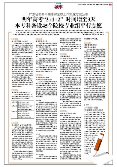 高考时间从2天变成3天;高考数学不再分文理;志愿填报单位从“院校”变成“院校专业组”;普通类本专科院校专业组平行志愿将各有45个…… 近日,广东省招生委员会、广东省教育厅联合印发《广东省202