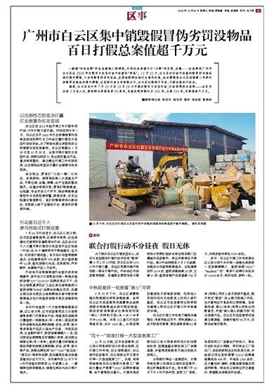 一箱箱“知名品牌”化妆品被推入粉碎机,中间还夹杂着不少“大牌”的手袋、皮鞋……这些都是广州市白云区在2020年打假百日攻坚行动中收缴的“李鬼”。12月22日,白云区对行动中收缴的假冒伪劣物品进行集
