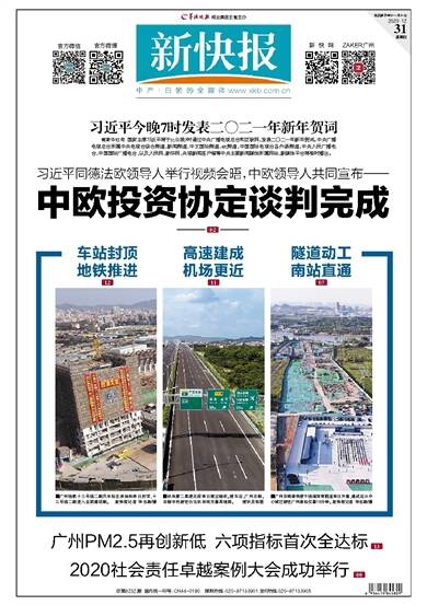 习近平同德法欧领导人举行视频会晤,中欧领导人共同宣布—— 中欧投资协定谈判完成 02 车站封顶 地铁推进 12 高速建成 机场更近 11 隧道动工 南站