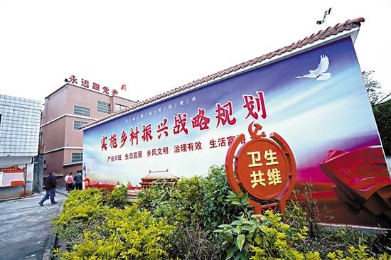 ■河源市一些乡村通过发展长效产业等措施,进一步推动脱贫攻坚有效衔接乡村振兴。图为东源县蓝口镇老埔场村“实施乡村振兴战略规划”的宣传标语。 |