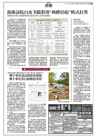 ■韶关违法拆除养猪场事件追踪报道 新快报讯 记者谭建东报道 韶关市浈江区犁市镇发生的一场强行拆除养猪场行动,至今已经超过一个月,截至1月3日,派人参与行动的两个单位,都不承认主导了这次违法行动。 2020年11月27日,浈江区城管局出动约40名执法人员,与犁市镇的干部一起,强拆了位于犁市镇梅村焦冲的一家养猪场。就书面通知而言,在被强行拆除之前,养猪场只在2020年8月20日接到过一张落款为“韶关市浈江区市容市貌整治提升工作领导小组办公室”(下称提升办)的关于限期拆除违法建设的通知。因为该办公室不具备执法资质、养猪场所在地方也不在市区,浈江区城管局一位副局长承认,这份通知不是有效的法律文书,这次强拆行动是一次违法执法行为(详见《新快报》2020年12月11日07版,见右图)。 在接受记者采访时,犁市镇说强拆行动是城管主导的,浈江区城管说是犁市镇主导的。记者了解到,犁市镇政府和浈江区城管都是提升办的成员单位。 据了解,当天的强拆行动,从人数上来看浈江区城管局居多,犁市镇派出的干部人数次之。浈江区城管是拥有执法权的单位。 强拆行动发生在犁市镇委负责人更换三天之后。记者采访了两任镇委负责人。因为涉及不同单位合作,按照工作流程,部署一场强拆行动,如果能在十个工作日安排好已经算是高效了。不过,2020年11月24日离任履新的罗奕文向记者表示,对于2020年11月27日发生的强拆行动并不知情。 犁市镇委现任负责人卢群吉表示,被强拆养猪场的问题,是养猪场、铁路林场和广东友丰油茶科技有限公司三方的问题,是一场民事纠纷,正确的做法是由三方通过协商或法律途径解决问题。政府部门、执法部门介入并不合适。 对于此事件,广东隆仁律师事务所律师刘俊表示,违法执法侵犯了公民的合法财产,行政机关负责人应当承担行政责任,行政机关本身应当承担行政赔偿责任。从这个事件看,可能还存在故意毁坏财物、滥用职权的嫌疑,如果查实,相关的人可能会被追究刑事责任。这也属于违纪行为,相关部门也应该根据情节进行查处。