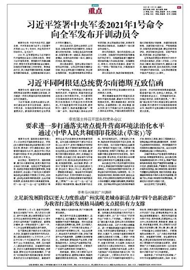 据新华社电 中共中央总书记、国家主席、中央军委主席习近平4日签署中央军委2021年1号命令,向全军发布开训动员令。全文如下: 2021年,全军要坚持以习近平新时代中国特色社会主义思想为指导,贯