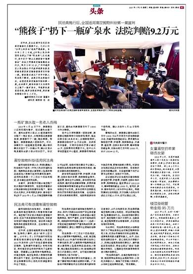 “熊孩子”扔下一瓶矿泉水 法院判赔9.2万元