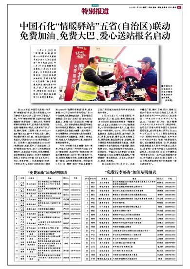 1月4日,2021年“情暖驿站满爱回家——中国石化关爱春节返乡务工人员公益活动”即日起至2021年1月27日全面接受社会报名,1月28日正式启动。今年将为返乡摩骑送出11000份免费加油礼包,开通