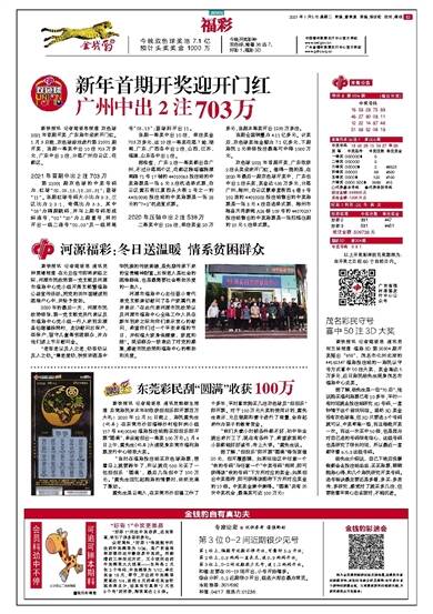 新快报讯 记者陆妍思报道 双色球2021年首期开奖,广东彩市迎来开门红。1月3日晚,双色球游戏进行第21001期开奖,当期一等奖中出10注703万多元,广东中出2注,分落广州白云区、花都区。