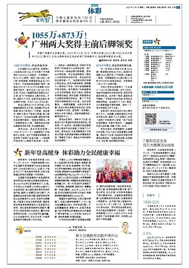 年前广州频中大乐透大奖。2020年12月28日,中得大乐透20122期1055万元大奖和20132期873万元大奖的幸运儿先后来到广州体彩中心,赶在新年前兑走大奖。 ■新快报记者 陆妍思 通讯