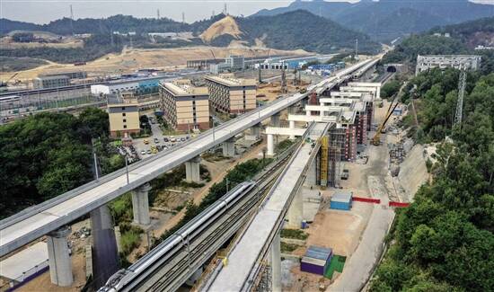 ■赣深铁路福龙路特大桥上跨广深港高铁箱梁横移施工启动,广深港高铁为珠三角地区繁忙的铁路干线,平均3分钟就有一辆动车通行,施工难度巨大。通讯员供图