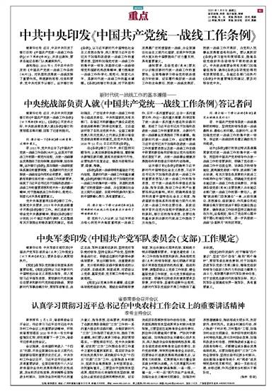 中央统战部负责人就《中国共产党统一战线工作条例》答记者问
